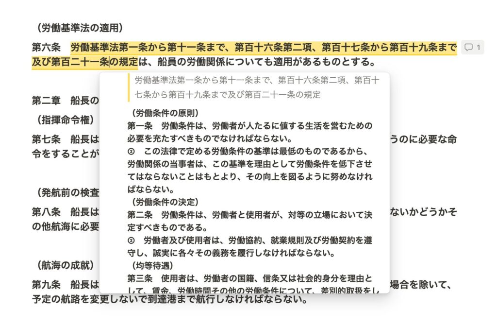 先ほど例にあげた船員法6条の部分です。コメントに労働基準法の条文をコピペしました。