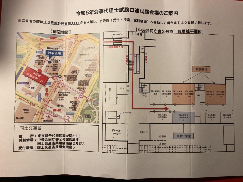 海事代理士試験二次試験、口述試験の試験会場は国土交通省本省です。