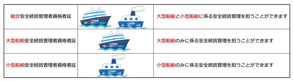 安全統括管理者と運航管理者について、資格者試験が実施され(令和7年度から実施予定)、合格した一定の実務経験者に資格者証が交付されることになりました(令和8年度から施行予定)。人を運送する船舶運航事業者は、資格者証を取得した安全統括管理者・運航管理者を置かなければいけません。