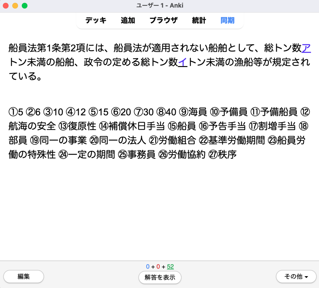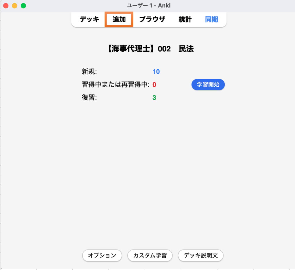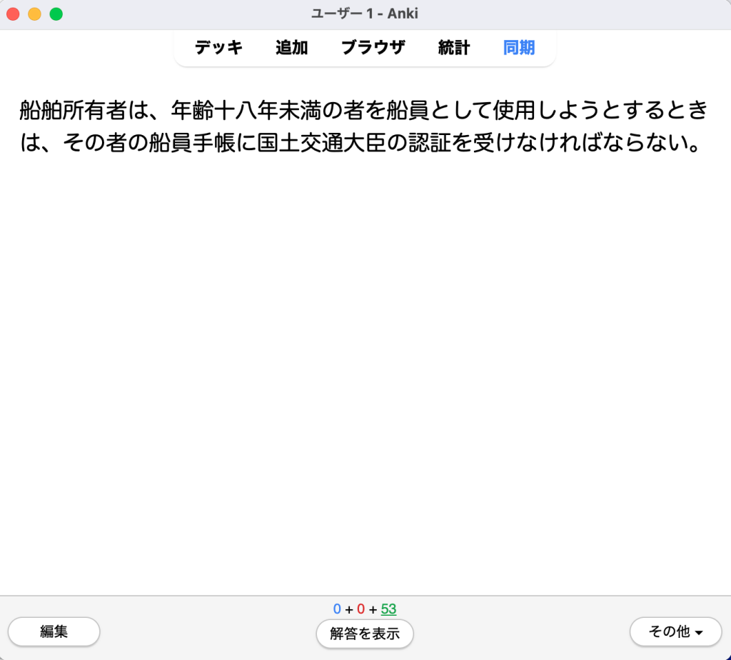 (いちいち【海事代理士】とつけているのは、他資格用のデッキもあるからですので、ご自身でわかるようにデッキ名をつけていただければいいと思います。