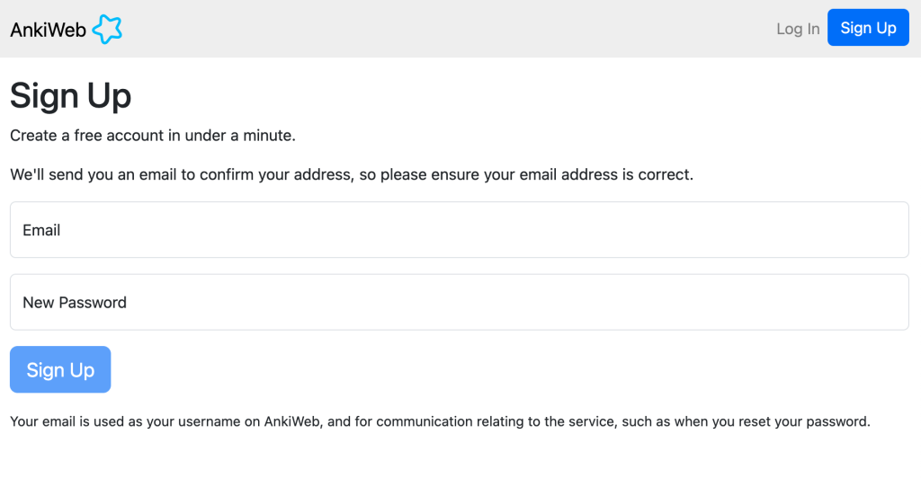 ①Ankiwebでアカウントを作る(すべてのデバイスでの動作がバックアップできます)