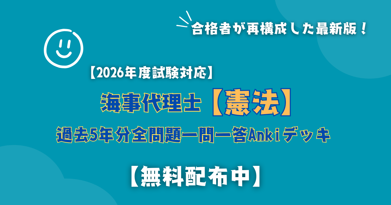 👉 【無料配布】海事代理士試験攻略!2026年度対応「憲法」Ankiデッキ(noteへ移動)